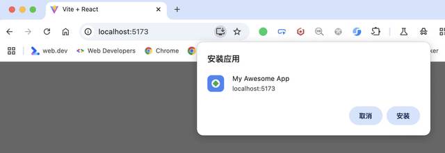 Then open the site's local URL in Chrome or Edge. You should see the PWA install button in the address bar of your browser: