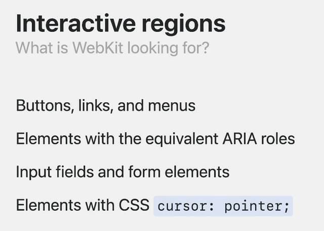 • Otherwise add the CSS property cursor: pointer to mark any element as an Interaction Region.