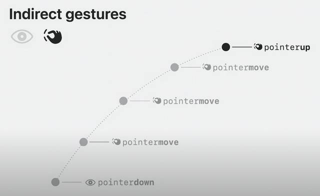 • In indirect interaction, the system renders a Hover Effect (for example, a glowing outline floating in front of the element under gaze). This is not the CSS :hover state; it is a native effect.