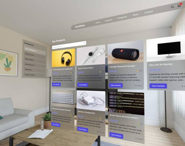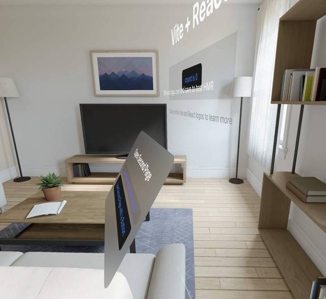 With WebSpatial, HTML elements can have backgrounds that are semi-transparent materials rendered in real time from the environment, so regardless of the environment's color and lighting conditions, content stays legible.